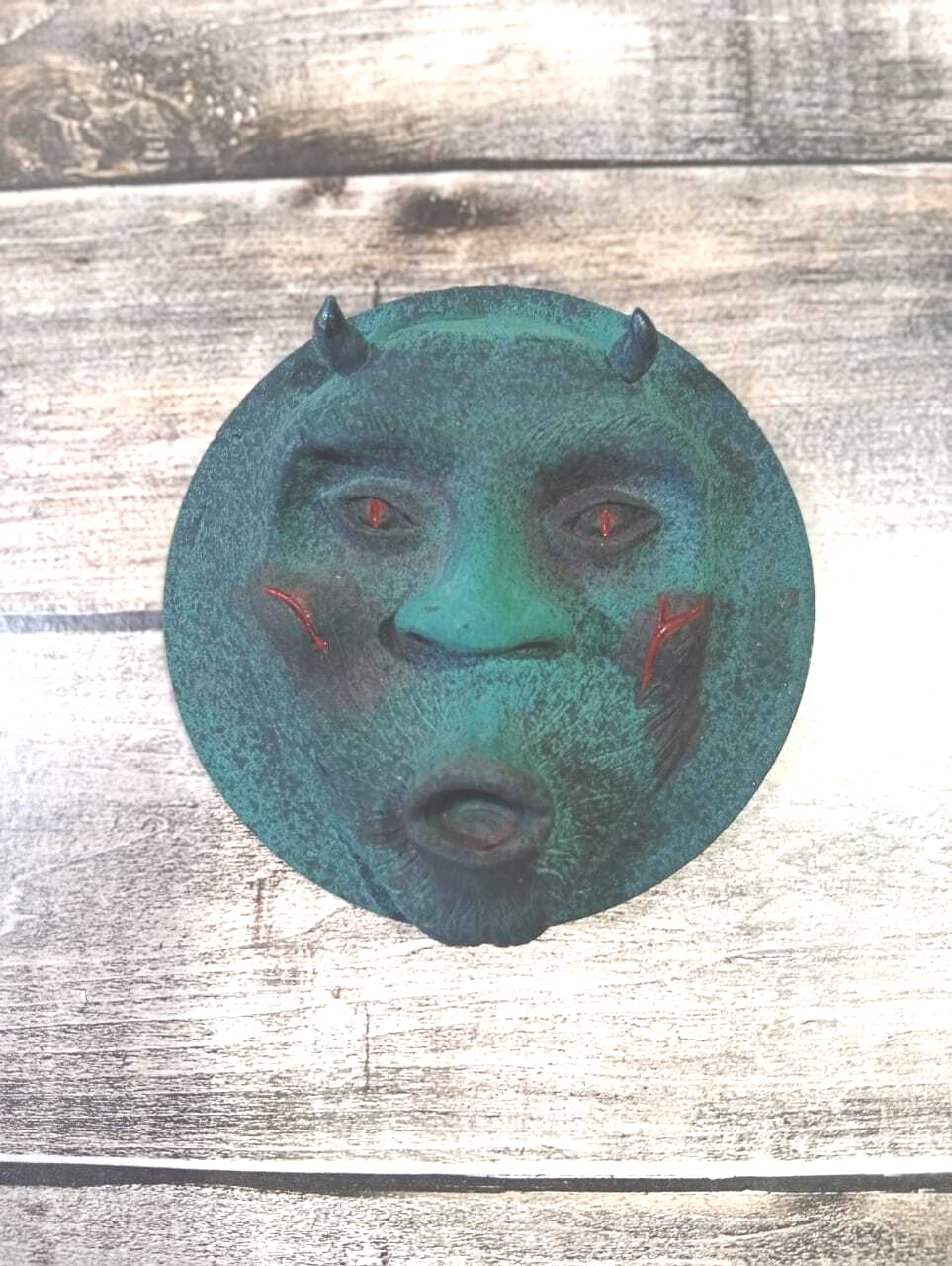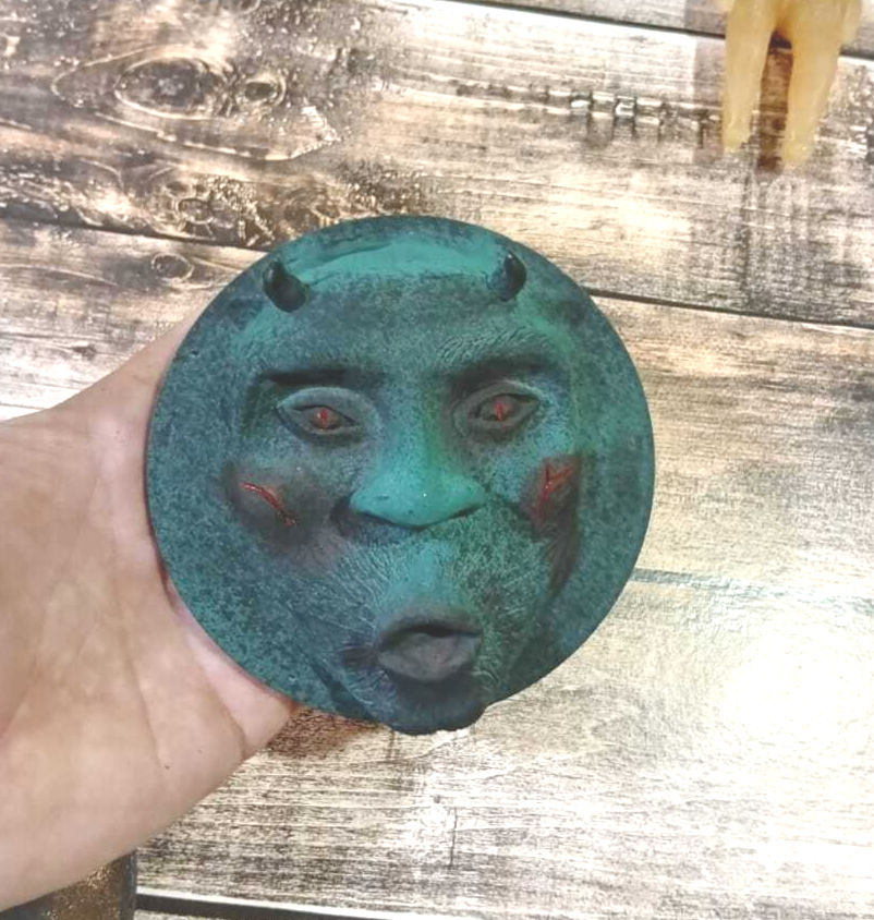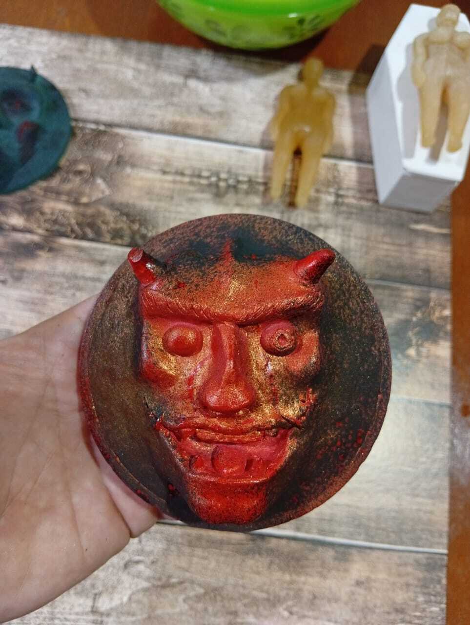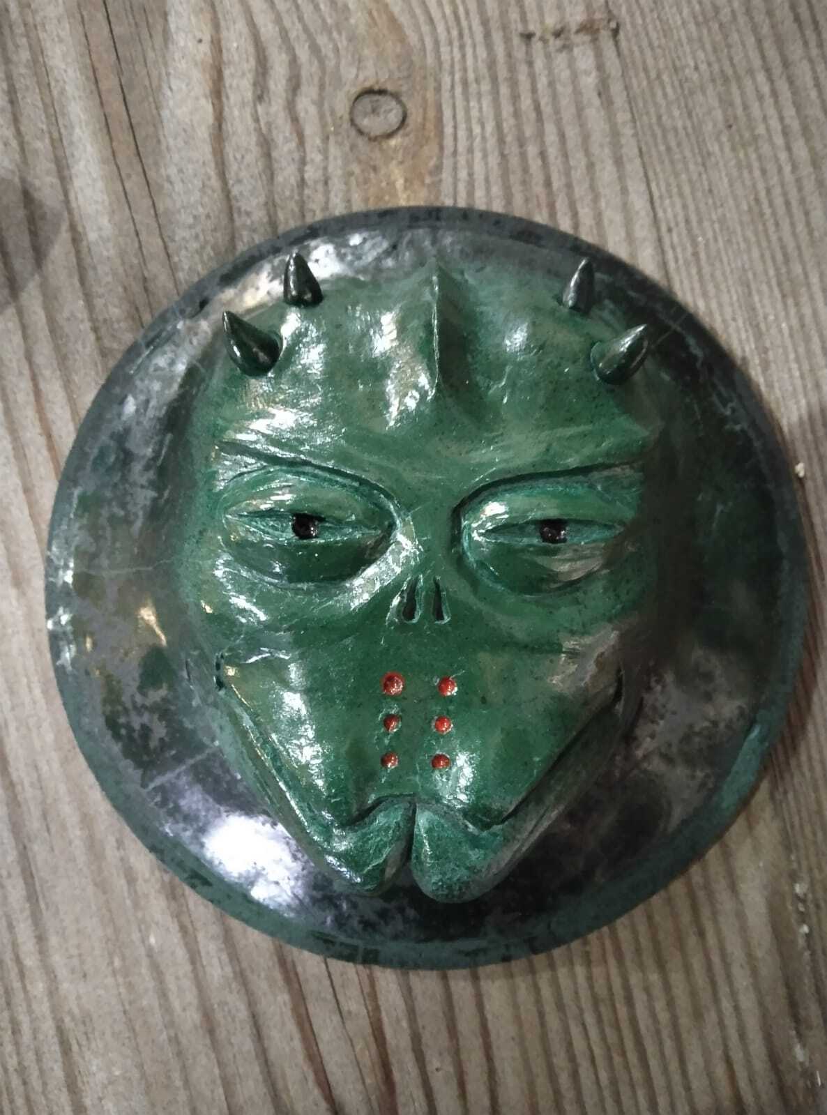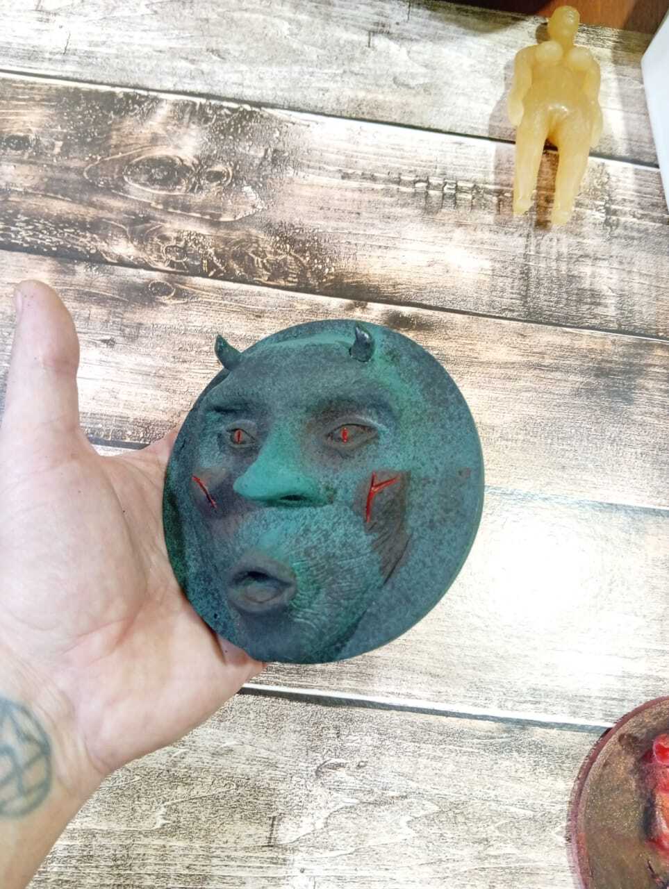 Сильнейший медальон - амулет в виде духовной сущности давшей клятву служить сломавшему печать пленяющей ее освященной мешковины. Диаметр амулета 111миллиметров. Амулет изготавливается и окрашивается в оккультной мастерской в ручную, второго такого нет.