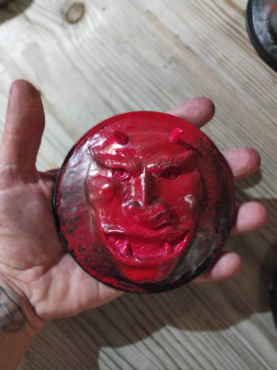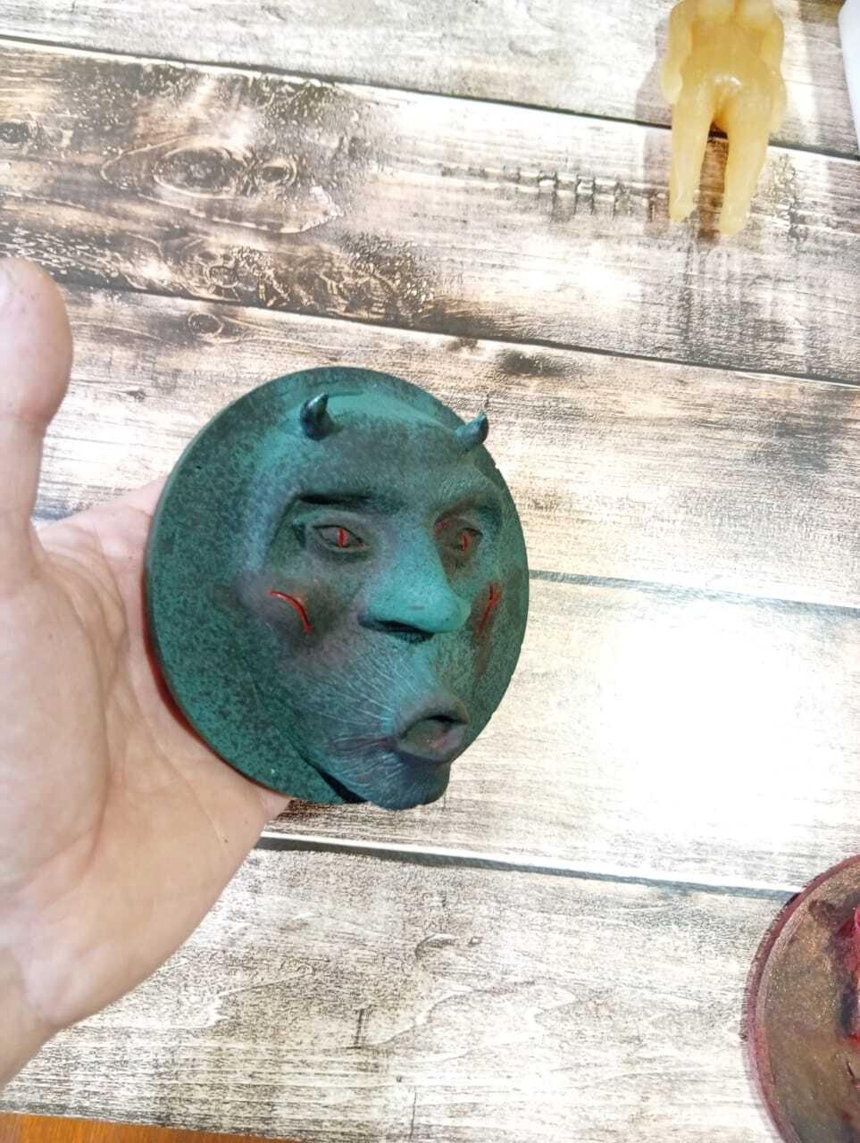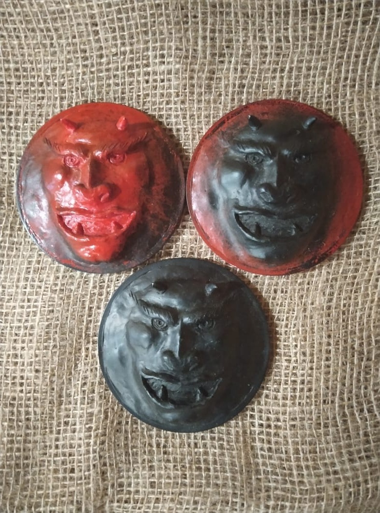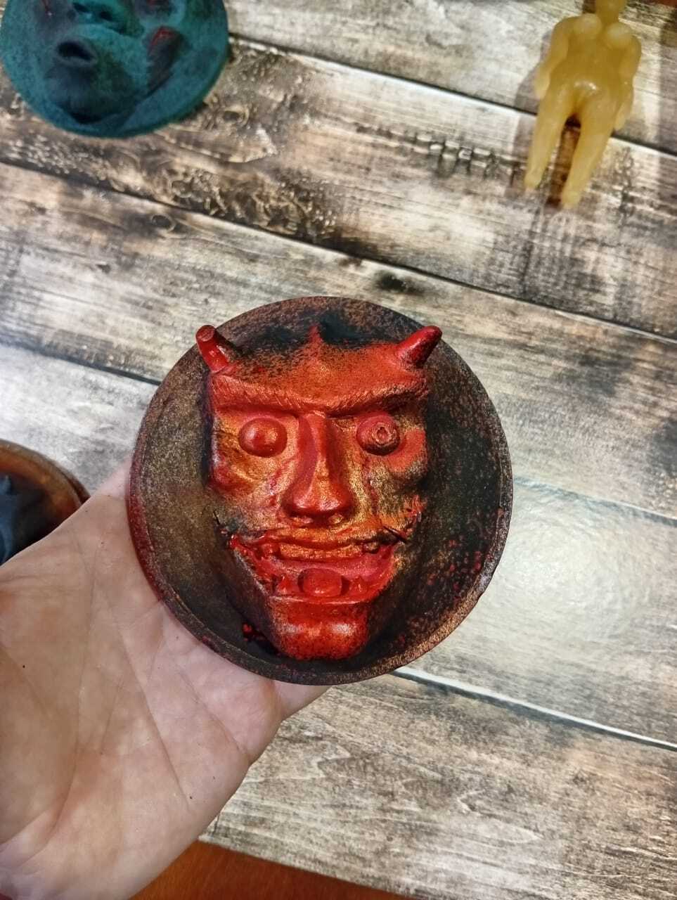 Сильнейший медальон - амулет в виде духовной сущности давшей клятву служить сломавшему печать пленяющей ее освященной мешковины. Диаметр амулета 111миллиметров. Амулет изготавливается и окрашивается в оккультной мастерской в ручную, второго такого нет.